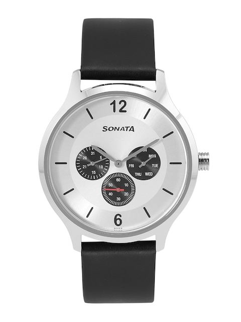 Sonata Men Leather Straps Analogue Multi Function Watch NR7140SL01