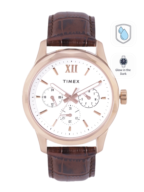 Timex Men White Dial & Brown Leather Straps Analogue Multi Function Watch TW0TG7600